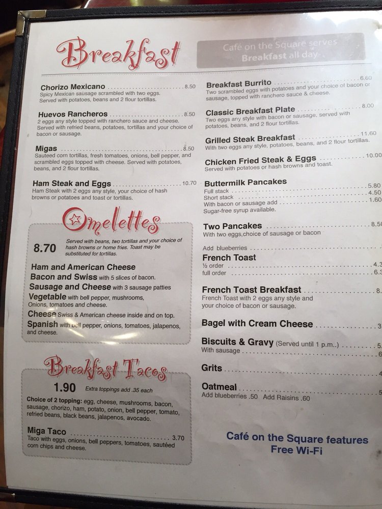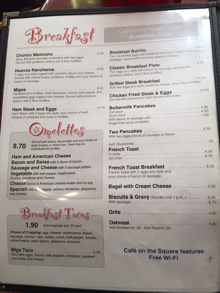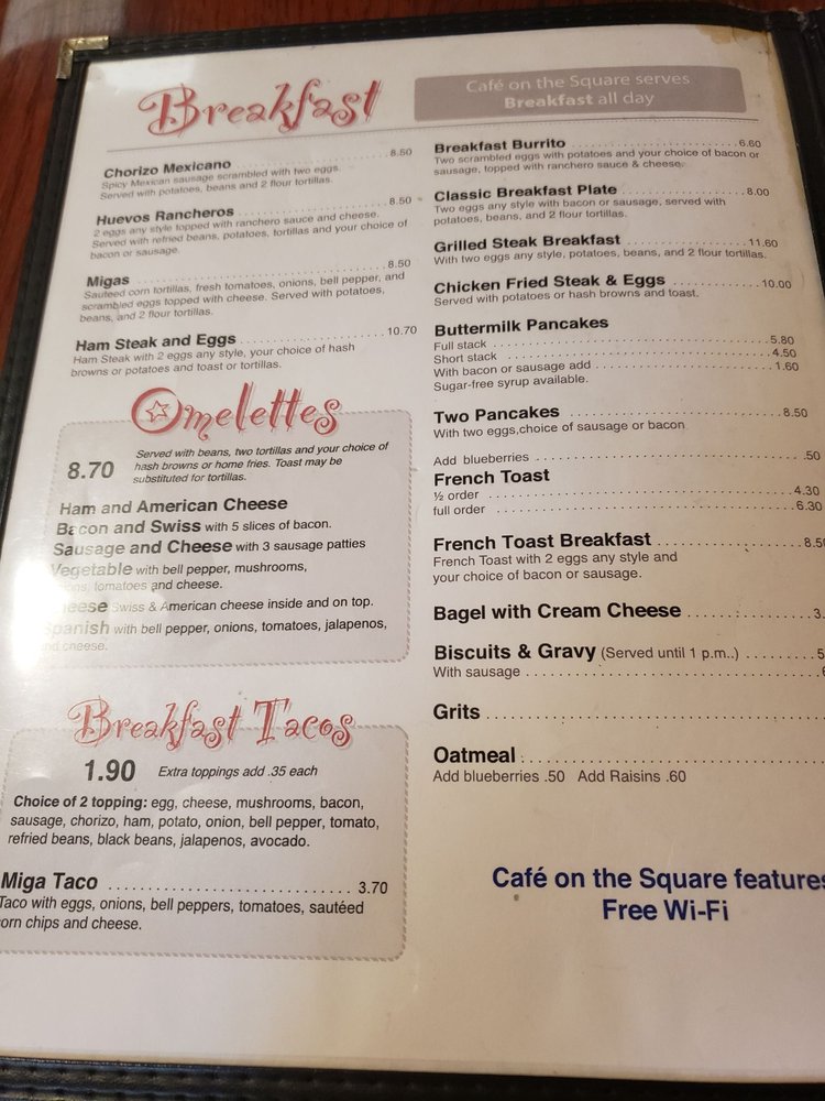 Cafe On the Square, located in San Marcos, is a beloved breakfast and brunch spot known for its cozy atmosphere and delicious menu offerings. Customers rave about the attentive service and nostalgic feel of this iconic restaurant. With a variety of vegetarian options, generous portions, and homemade desserts, Cafe On the Square has something for everyone. Dishes like migas tacos and blueberry pancakes stand out as must-try items, highlighting the creativity and quality of the cuisine. The accommodating staff, led by servers like Eya and Alex, provide excellent service and ensure a pleasant dining experience. Whether you're craving breakfast, lunch, or even dinner, Cafe On the Square offers a tasty selection that keeps customers coming back for more.